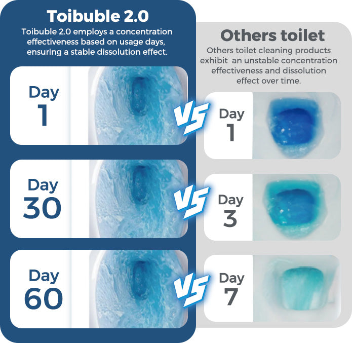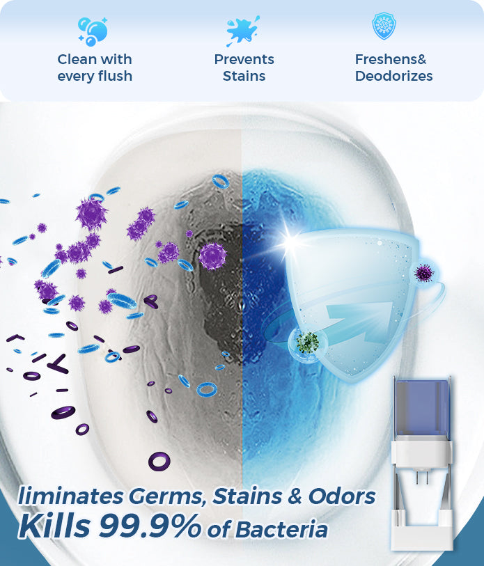 Toibuble 2.0 continuously cleans, prevents stains and deodorizes your toilet bowl with each flush, help prevent tough stains and removes hard water, mineral deposits and limescale stains, With every flush, it leaves your toilet bowl sanitary and keeps it sparkling clean and smelling fresh.